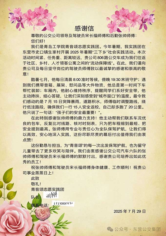 圓夢高考|“你們?nèi)σ愿埃覀內(nèi)套o航!”為保障高考期間交通順暢有序,東營市公交集團以高度的責(zé)任感提前布局、周密安排,傾力打造安全、高效的送考保障體系,誓為全市考生鋪就一條平安赴考的坦途。市公交集團選拔駕駛經(jīng)驗豐富且服務(wù)意識突出的優(yōu)秀駕駛員...[查看更多>>]更多>>> 最新公告